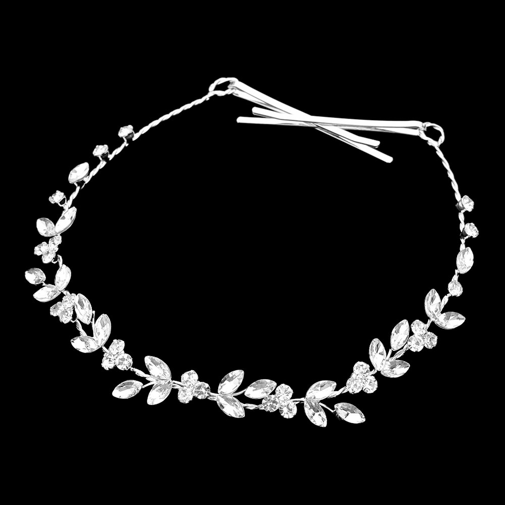 • Elegant bridal hair halo featuring sparkling crystal leaves on a delicate vine design. Perfect for weddings, proms, and special occasions, this lightweight headpiece enhances updos and loose styles with timeless elegance.