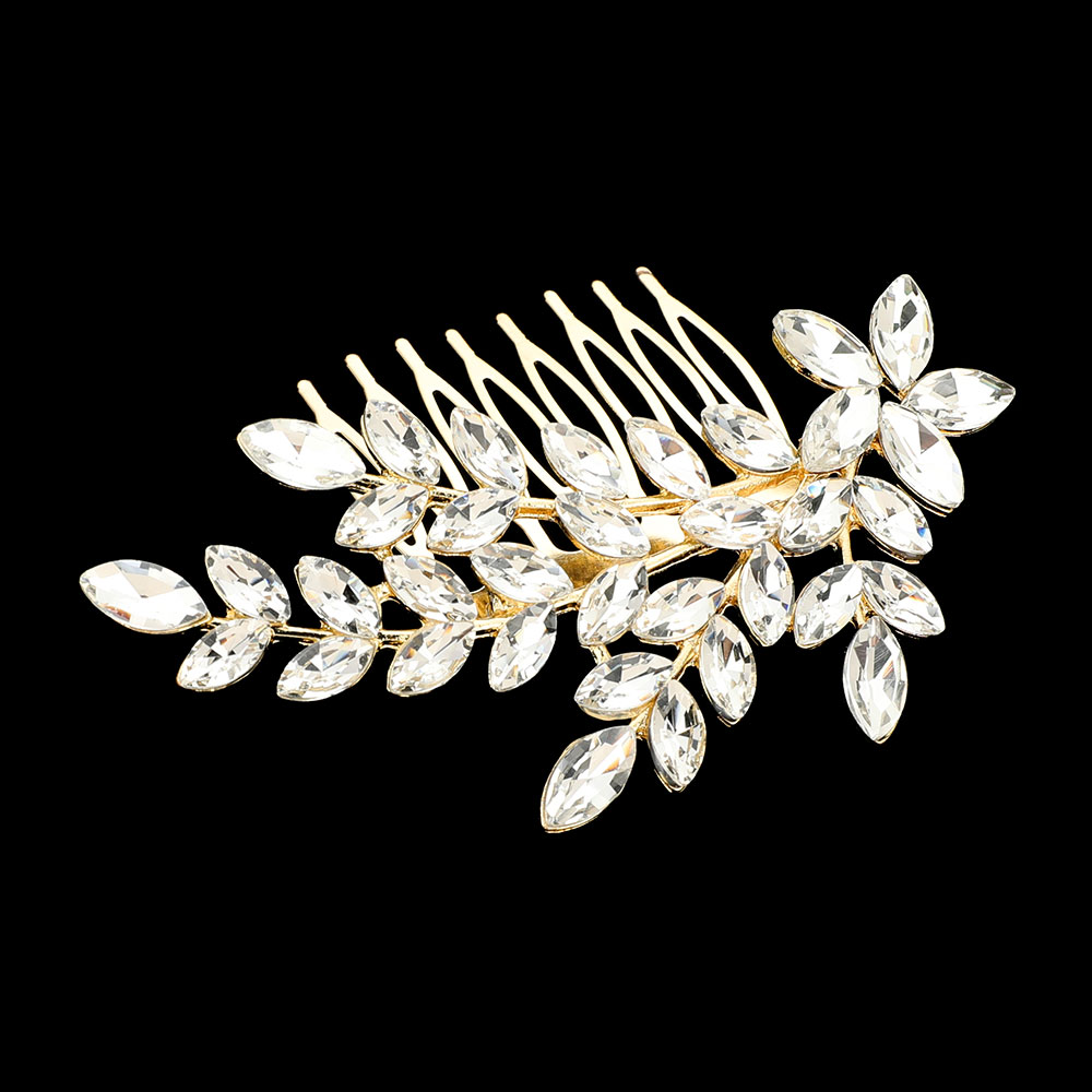 Marquise Stone Cluster Embellished Floral Branch Hair Comb