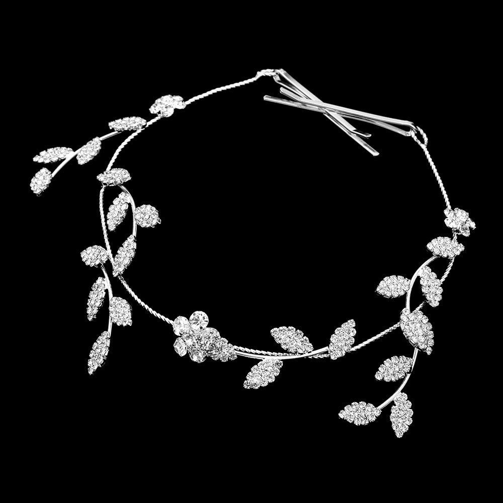 Rhinestone Paved Floral Leaf Vine Bun Wrap Headpiece