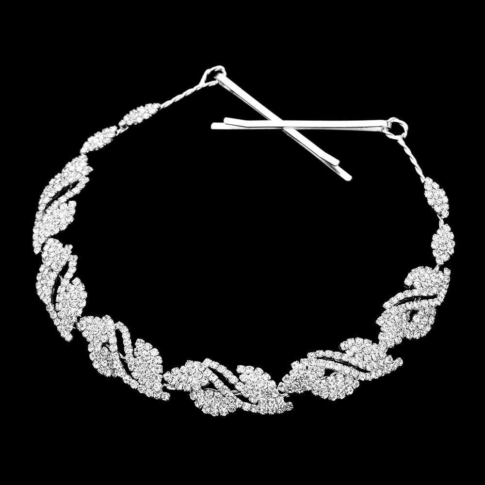 Details • Size : 11" X 0.5" • A Pair Bobby Pin Included • Elegant crystal leaf vine bridal hair vine headpiece designed with sparkling rhinestones in a flowing pattern. Flexible and lightweight, perfect for weddings, proms, and special occasions to enhance any hairstyle.