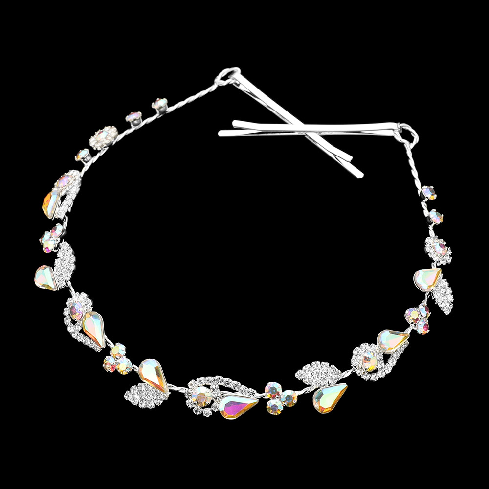Details • Size : 11" X 0.6" • A Pair Bobbi Pin Included • Add shimmering elegance to any bridal or formal hairstyle with this crystal teardrop floral vine headband. Flexible and lightweight, it features sparkling accents and secure pins, making it perfect for weddings, proms, and special occasions. • Lead and Nickel Compliant