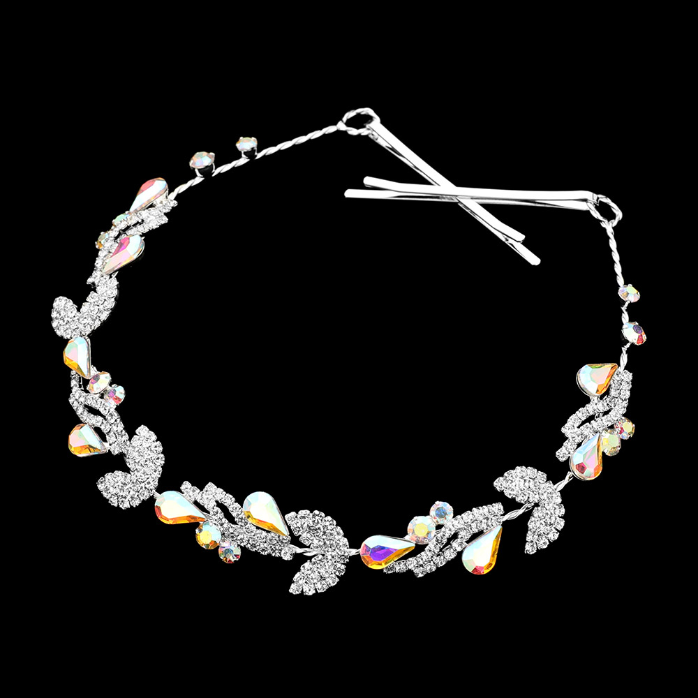• Enhance any bridal or formal look with this crystal teardrop floral vine headband. Designed with sparkling rhinestones and flexible wire for easy shaping, it secures with included pins—perfect for weddings, proms, and elegant occasions.