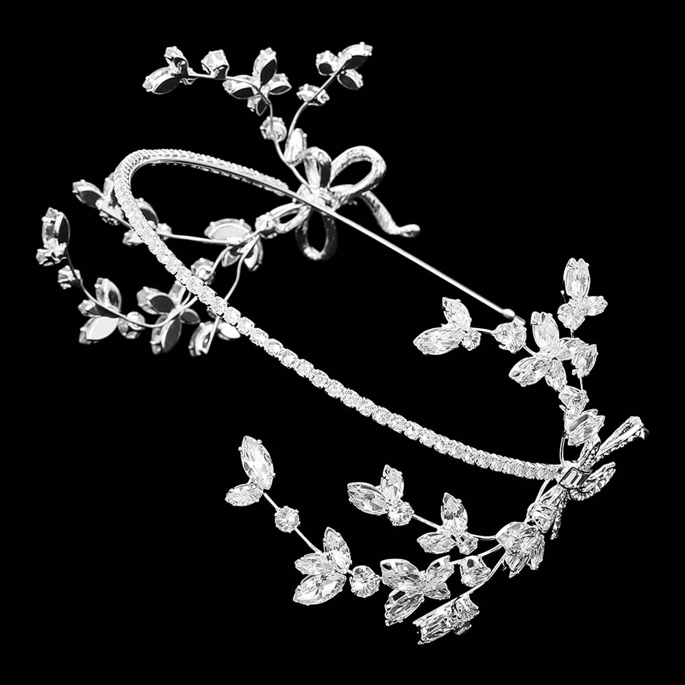 Details • Size : 2.8" H • Elegant floral hair vine headpiece designed with sparkling crystal accents and delicate branch details for a romantic look. Perfect for weddings, bridal styling, proms, and formal events. Flexible design allows easy shaping for updos, half-up styles, or loose hairstyles.