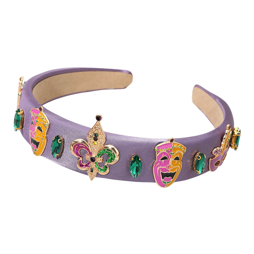 Enamel Mardi Gras Jester Mask Fleur de Lis Charm Embellished Headband Enamel Mardi Gras Jester Mask Fleur de Lis Charm Embellished Headband