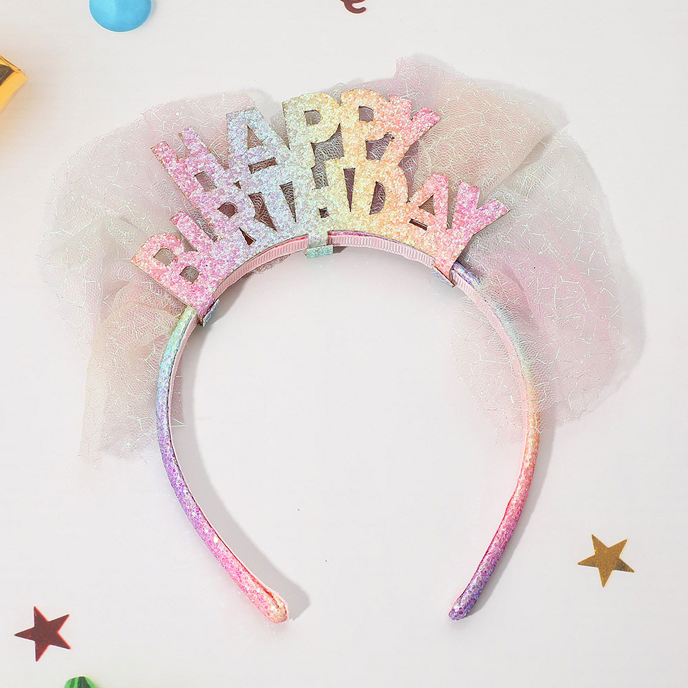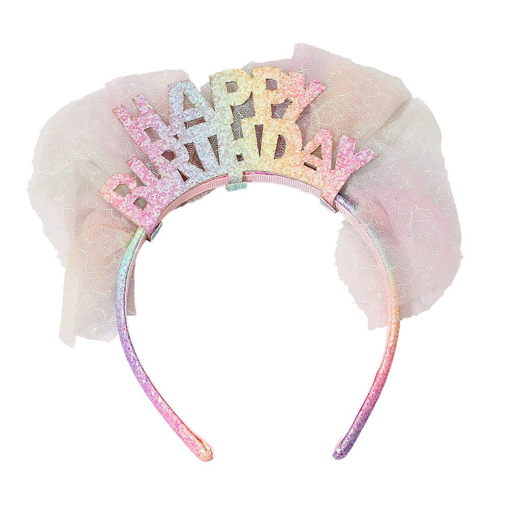 Details • Size : 3" H • Add sparkle to any celebration with this “Happy Birthday” headband featuring glittery letters and soft mesh bow accents. Designed for comfort and fun, this festive accessory makes every birthday look extra special and picture-perfect for parties and joyful gatherings.