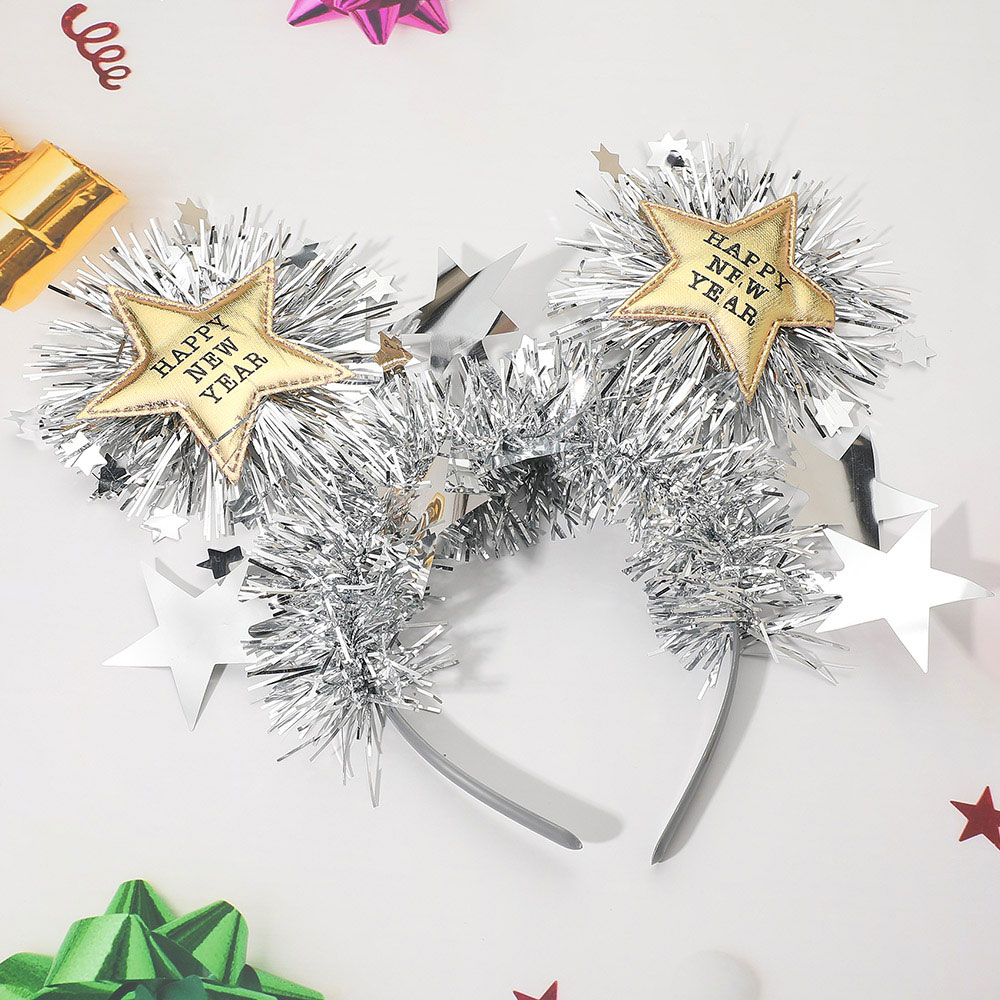 HAPPY NEW YEAR Star Embellished Festive Tinsel Headband HAPPY NEW YEAR Star Embellished Festive Tinsel Headband