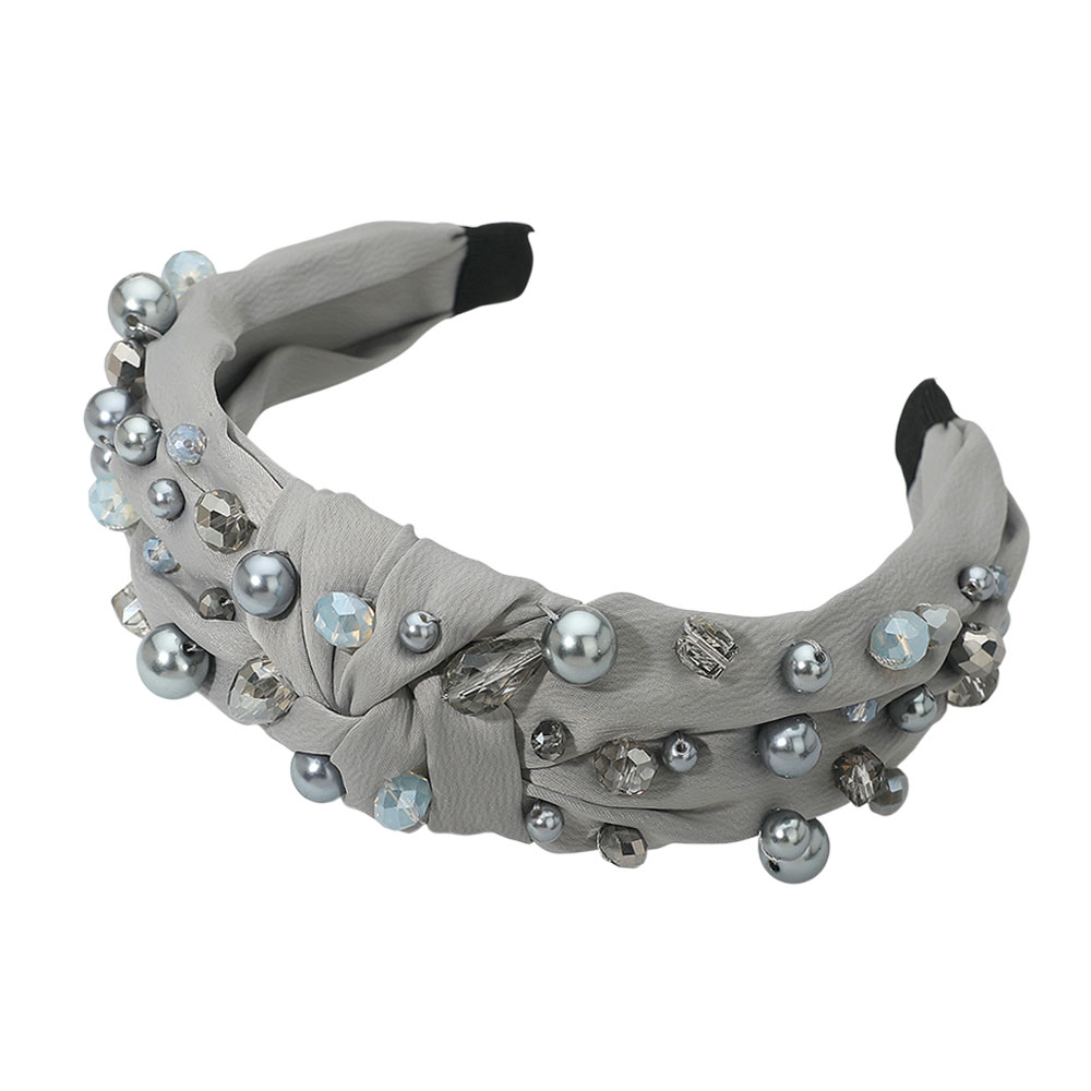 Pearl Multi Bead Embellished Knot Burnout Headband