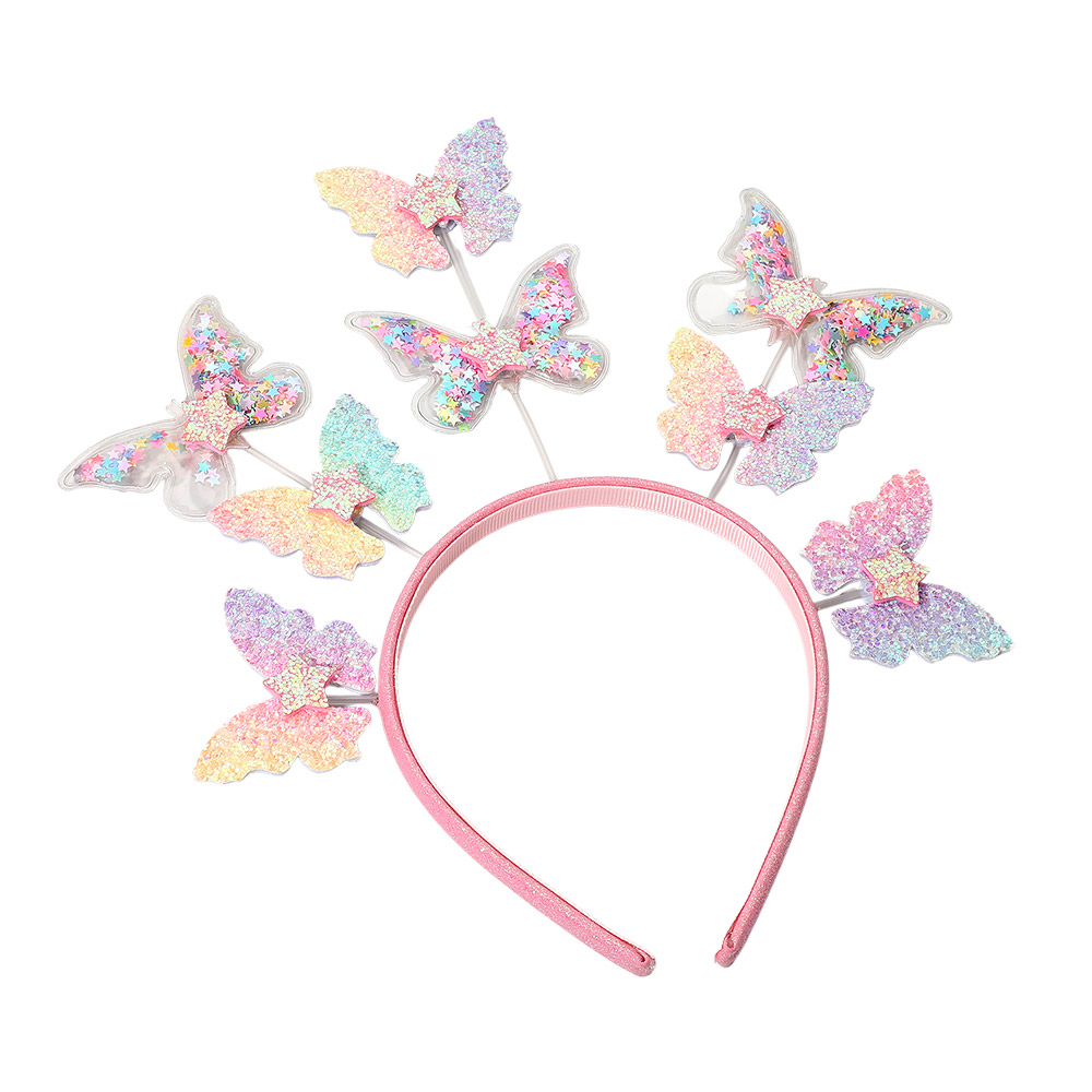 • Bring a whimsical touch to your look with this glitter butterfly headband adorned with fluttering butterfly shapes and sparkling star details. Lightweight and festive, it’s perfect for parties, photos, or playful events where you want to stand out with magical charm.