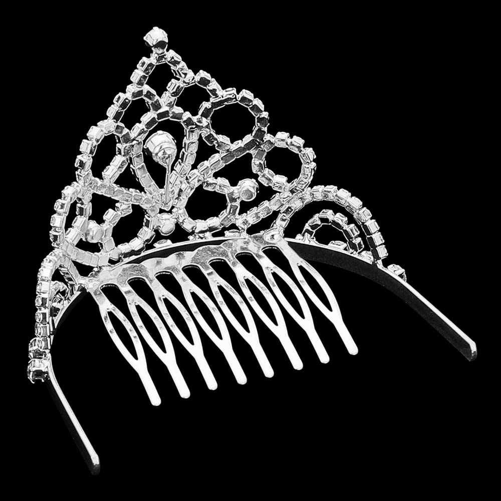 Round Stone Accent Rhinestone Paved Mini Princess Tiara