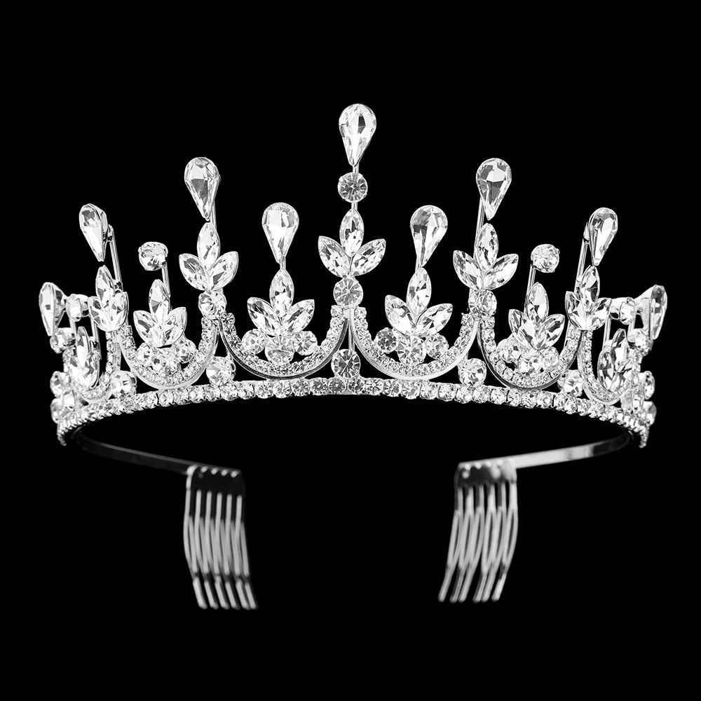 • Elegant crystal tiara featuring sparkling floral motifs, teardrop accents, and a graceful arched silhouette. Includes secure side combs for a comfortable, stable fit. Perfect for weddings, pageants, quinceañeras, proms, and formal events.