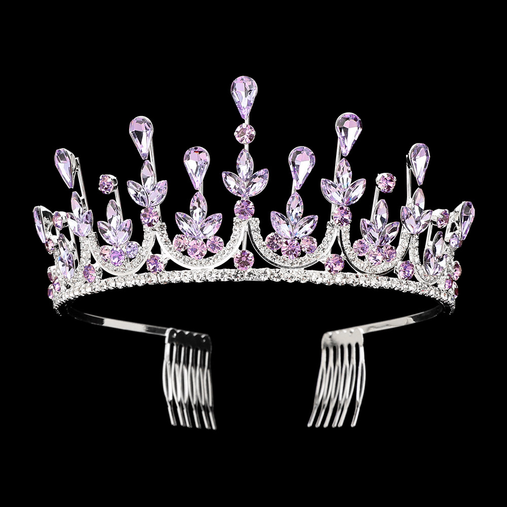 • Elegant crystal tiara featuring sparkling floral motifs, teardrop accents, and a graceful arched silhouette. Includes secure side combs for a comfortable, stable fit. Perfect for weddings, pageants, quinceañeras, proms, and formal events.