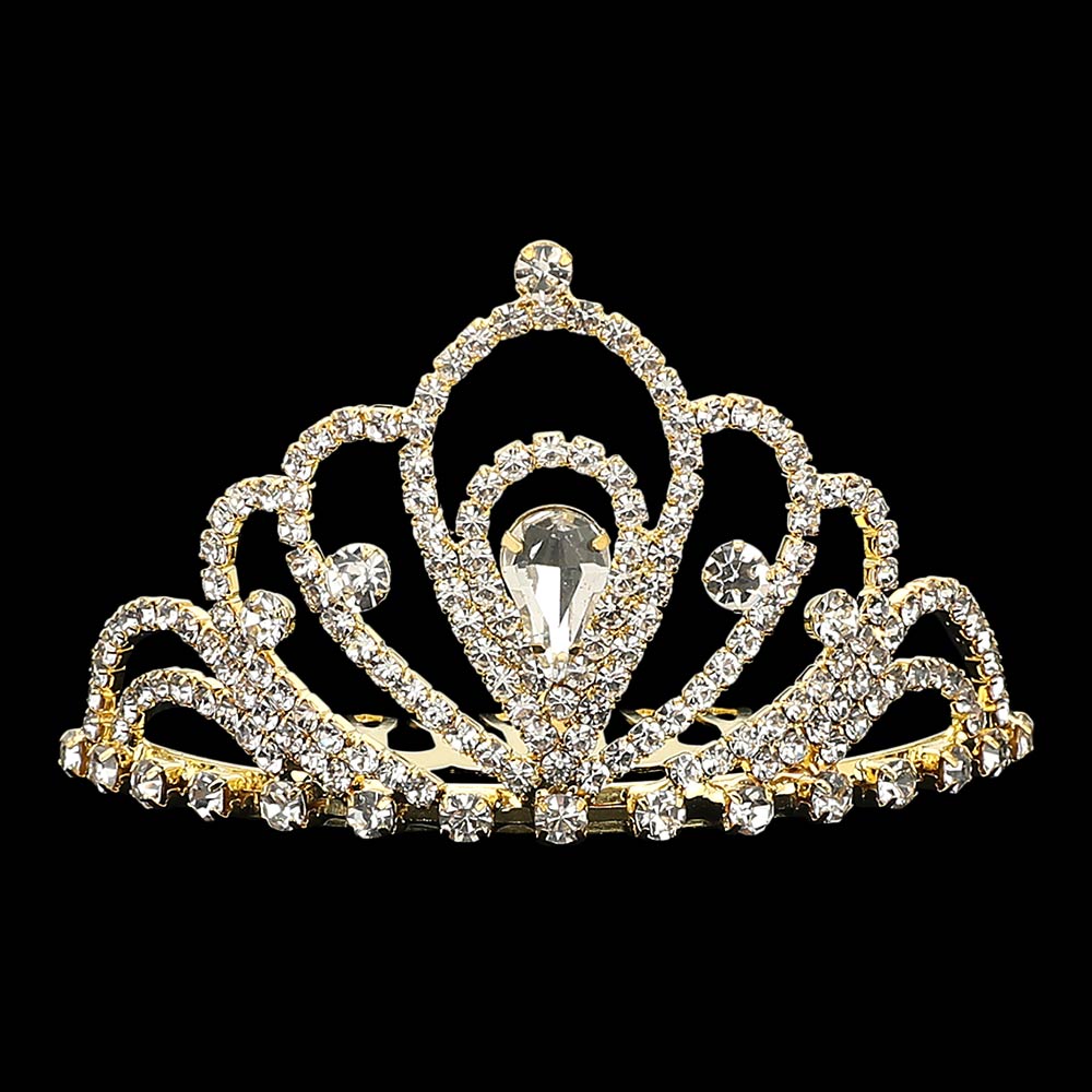 Teardrop Stone Accent Rhinestone Paved  Mini Princess Tiara