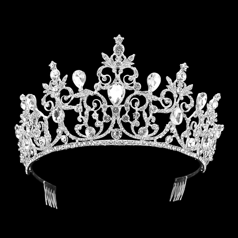 Teardrop Stone Cluster Accent Crown Princess Tiara