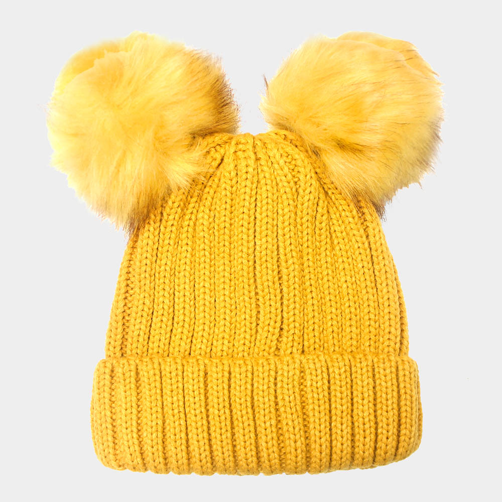 Double Pom Pom Knit Beanie Hat