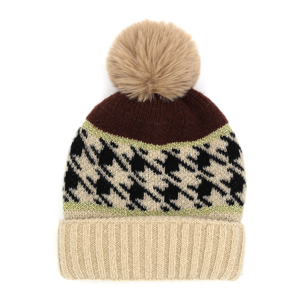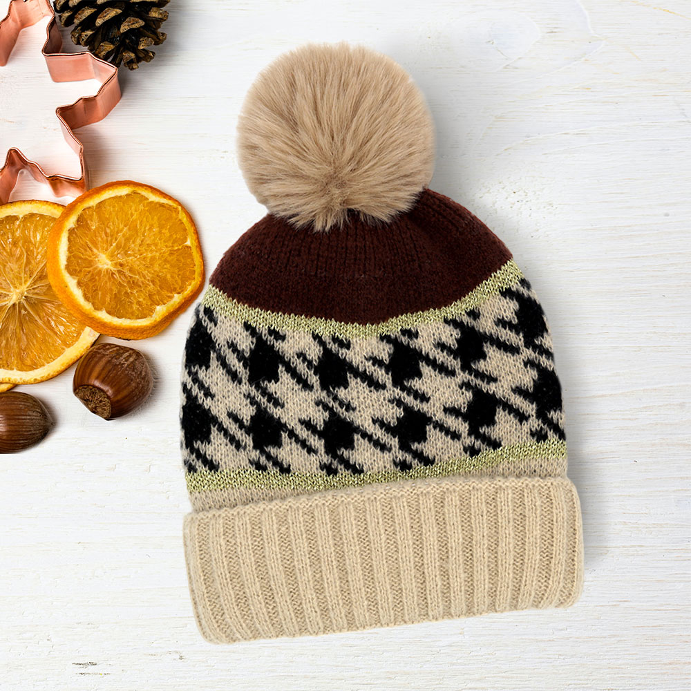 Holiday Pine Tree Pattern Fleeced Pom Pom Winter Beanie Hat