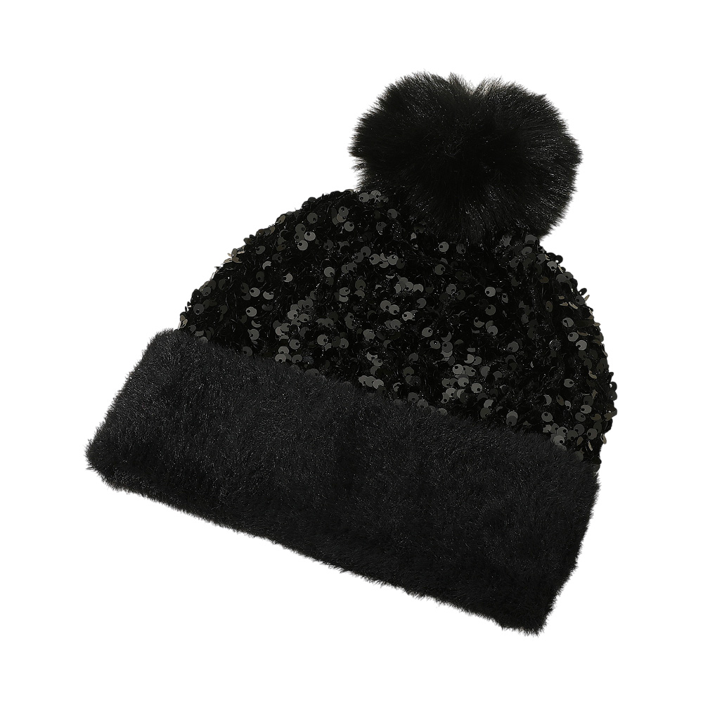 Sequin Embellished Pom Pom Beanie Hat