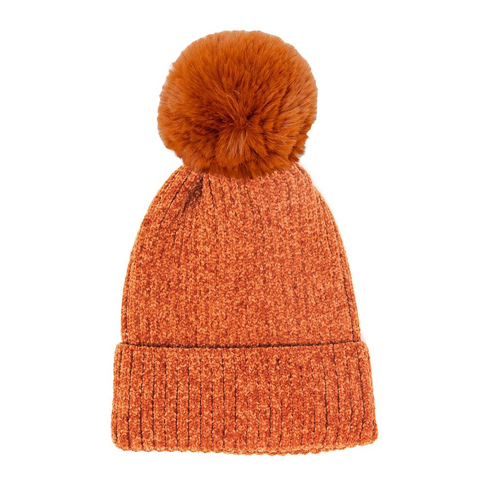 Faux Fur Pom Pom Cuffed Single Layered Beanie Hat