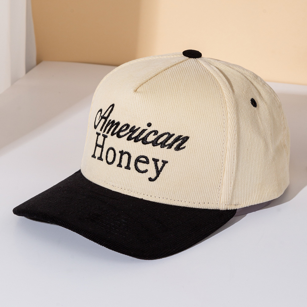AMERICAB HONEY Message Embroidered Five Panel Canvas Snapback Baseball Cap