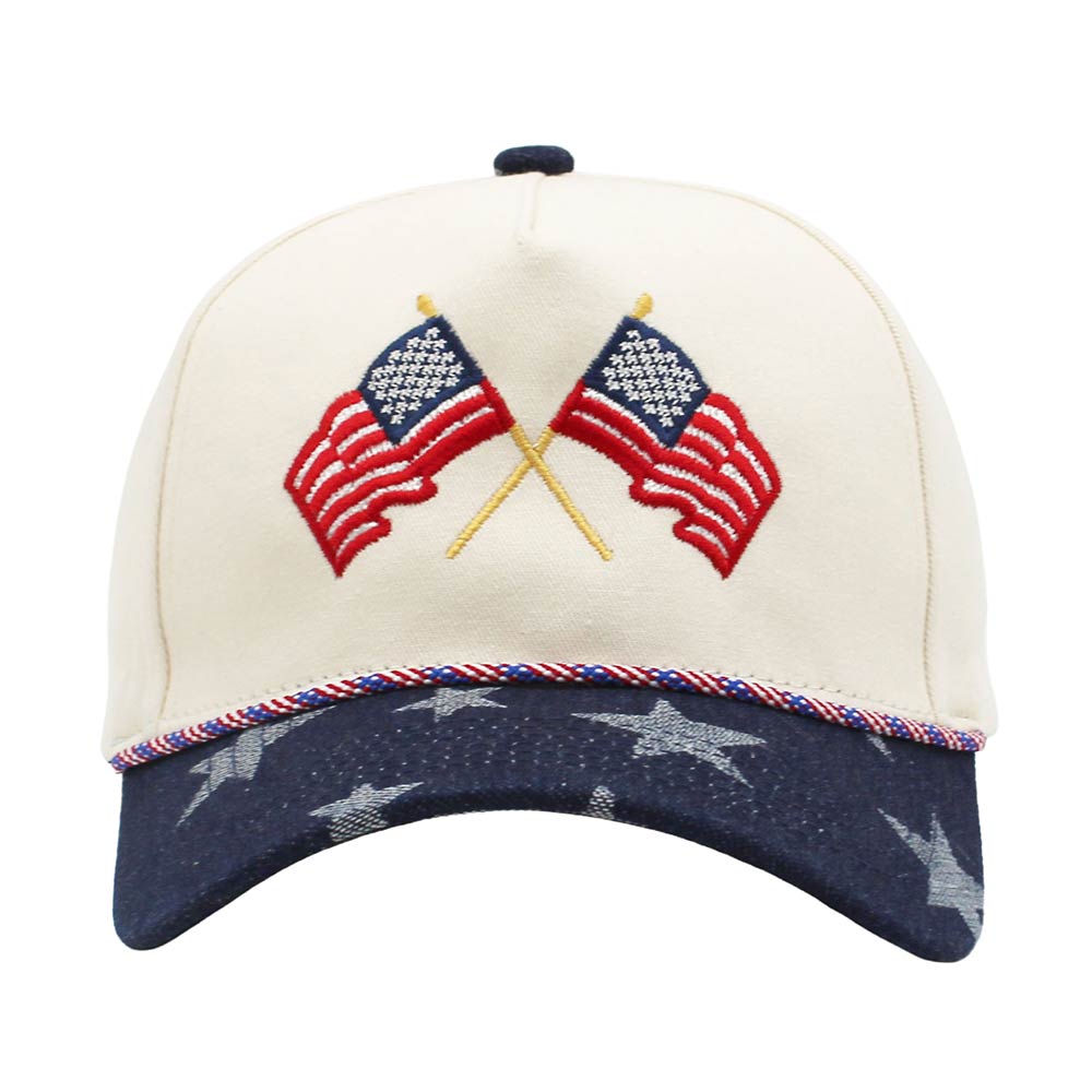 Double American USA Flag Embroidered Patriotic Star Baseball Cap