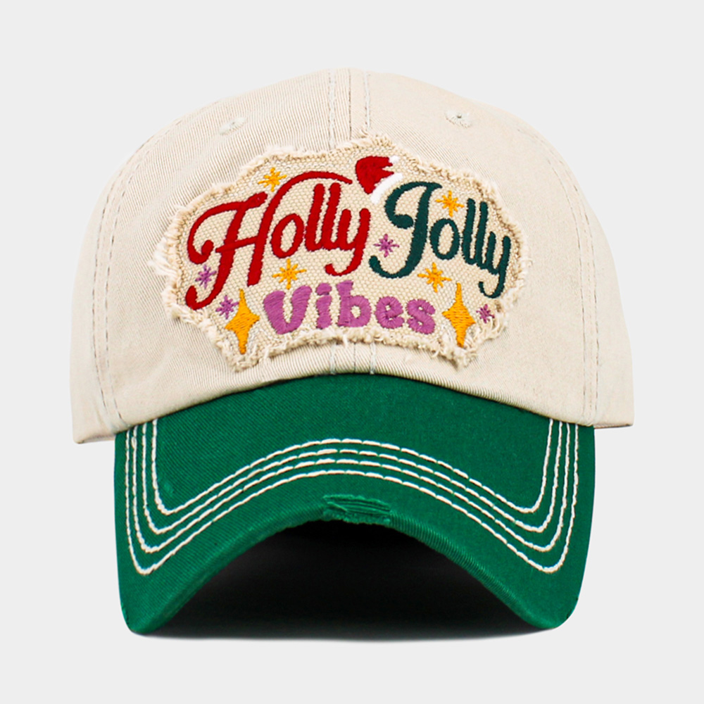 HOLLY JOLLY Vibes Message Embroidered Christmas Vintage Baseball Cap