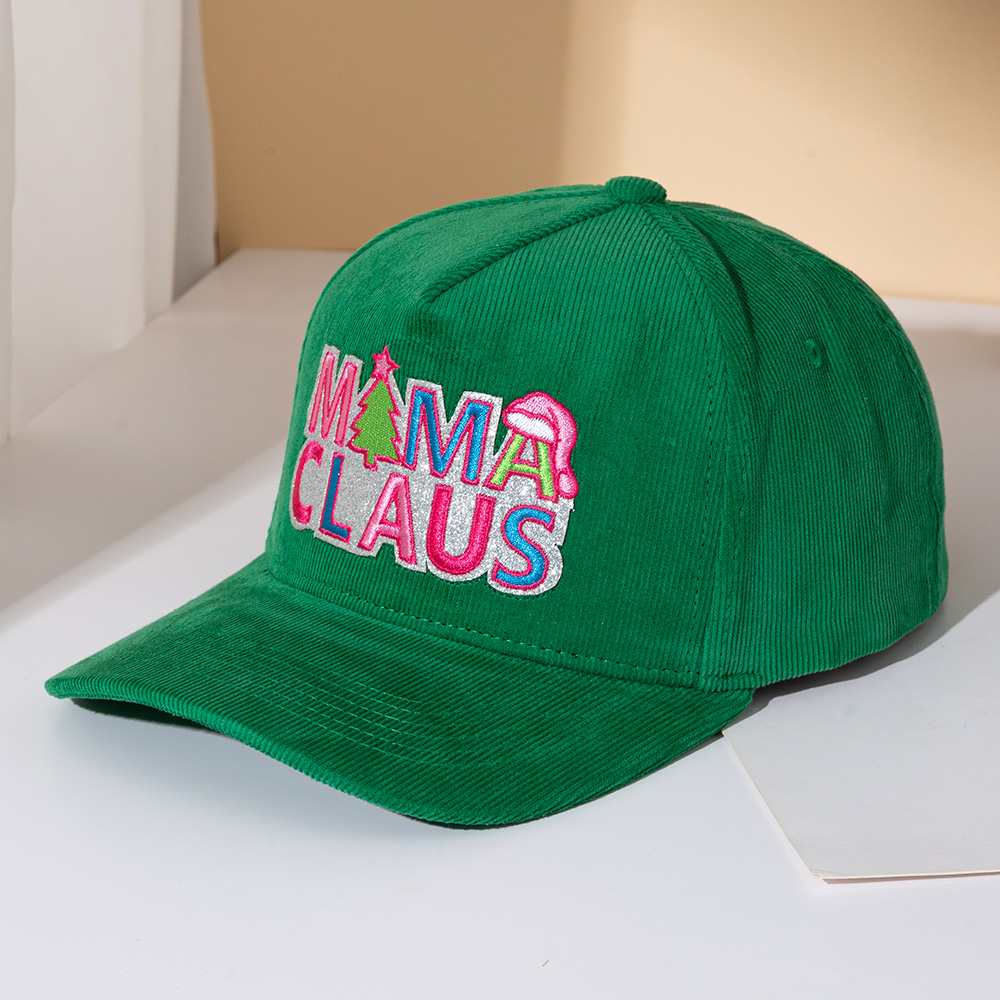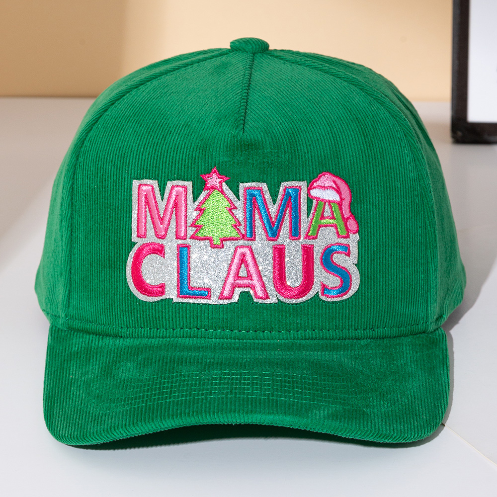 MAMA CLAUS Message Embroidered Corduroy Baseball Cap