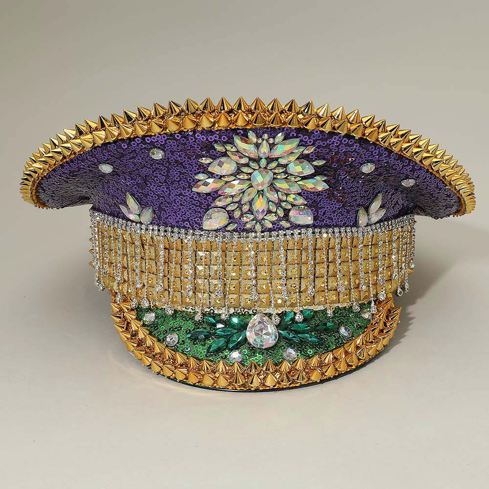 Mardi Gras Marquise Stone Cluster Embellished Rhinestone Sequin Captain Hat