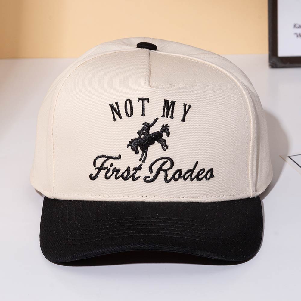 Details • Size : One Size • Statement baseball cap featuring “Not My First Rodeo” embroidery with a bold western-inspired graphic. Designed for everyday comfort and easy styling. Perfect for casual wear, travel, outdoor activities, or gifting with a confident, playful attitude and timeless appeal.