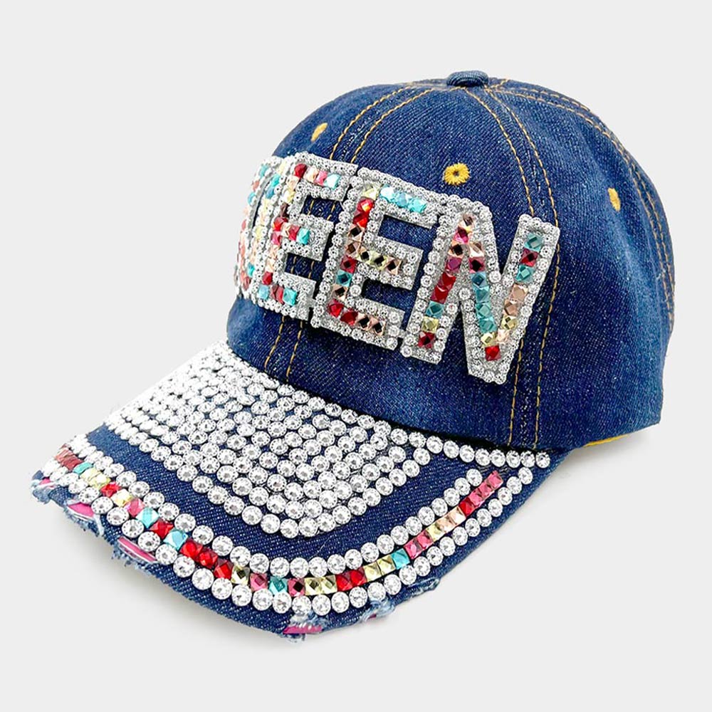Chain Detail Bling Studded Brim Denim Vintage Baseball Cap