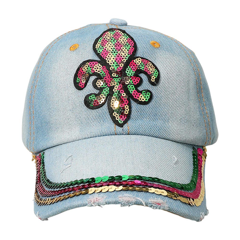 Sequin Mardi Gras Fleur de Lis Patch Baseball Cap