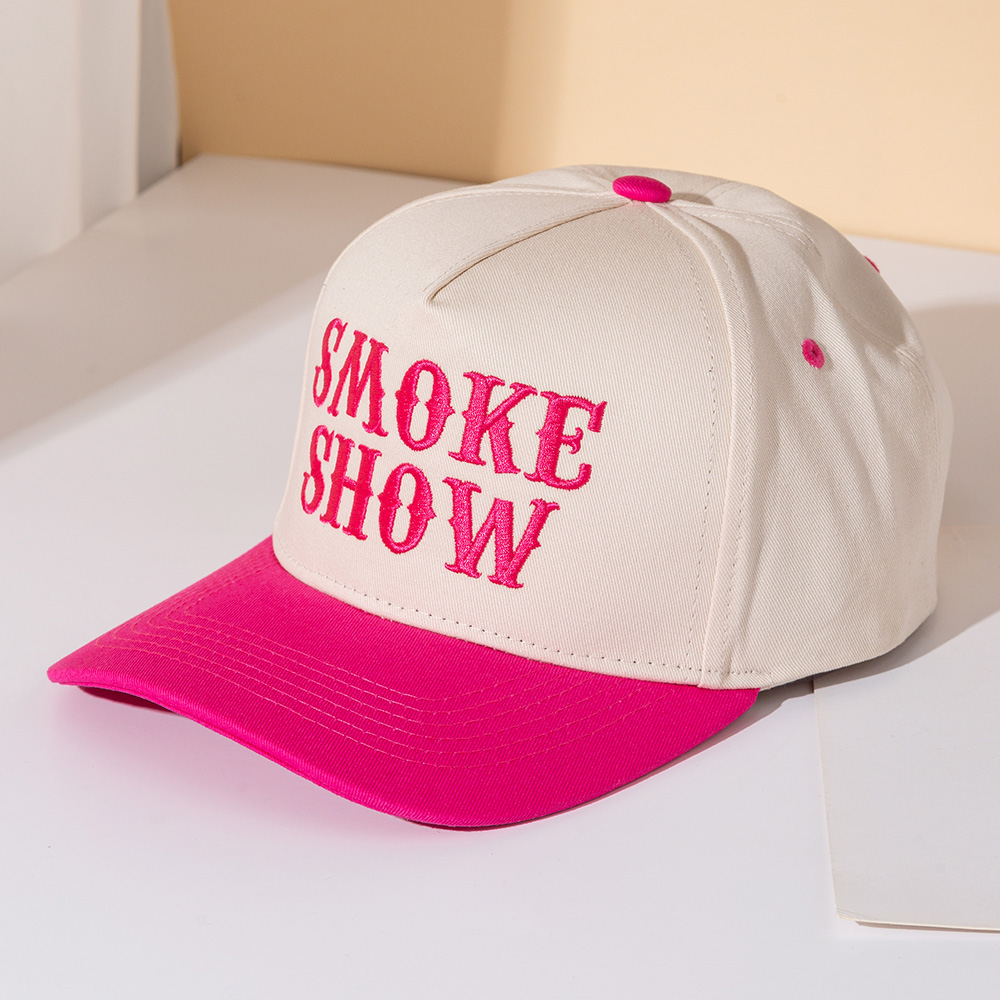 Details • Size : One Size Fits All - Adjustable Strap Makes Fit Comfortable • 5 Panel Canvas Cap : Adjustable Buckle Closure, Relaxed Fit and Pre-Curved Visor • Stand out in style with this playful “SMOKE SHOW” embroidered cap, designed for confident, bold looks. Adjustable and comfortable with a casual fit, this statement hat is perfect for everyday streetwear, parties, or gifting. A fun and trendy accessory to add personality to any outfit.