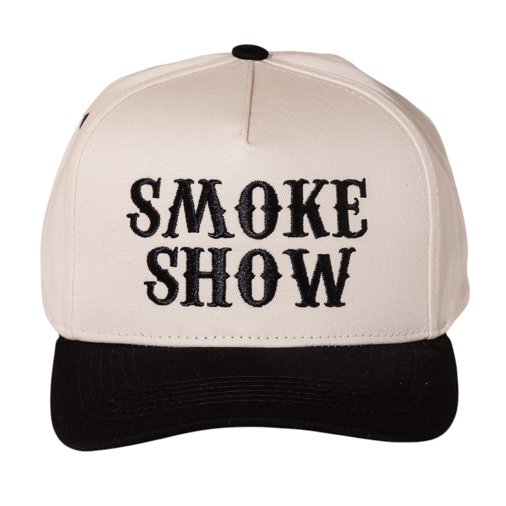 SMOKE SHOW Message Embroidered Five Panel Canvas Snapback Baseball Cap