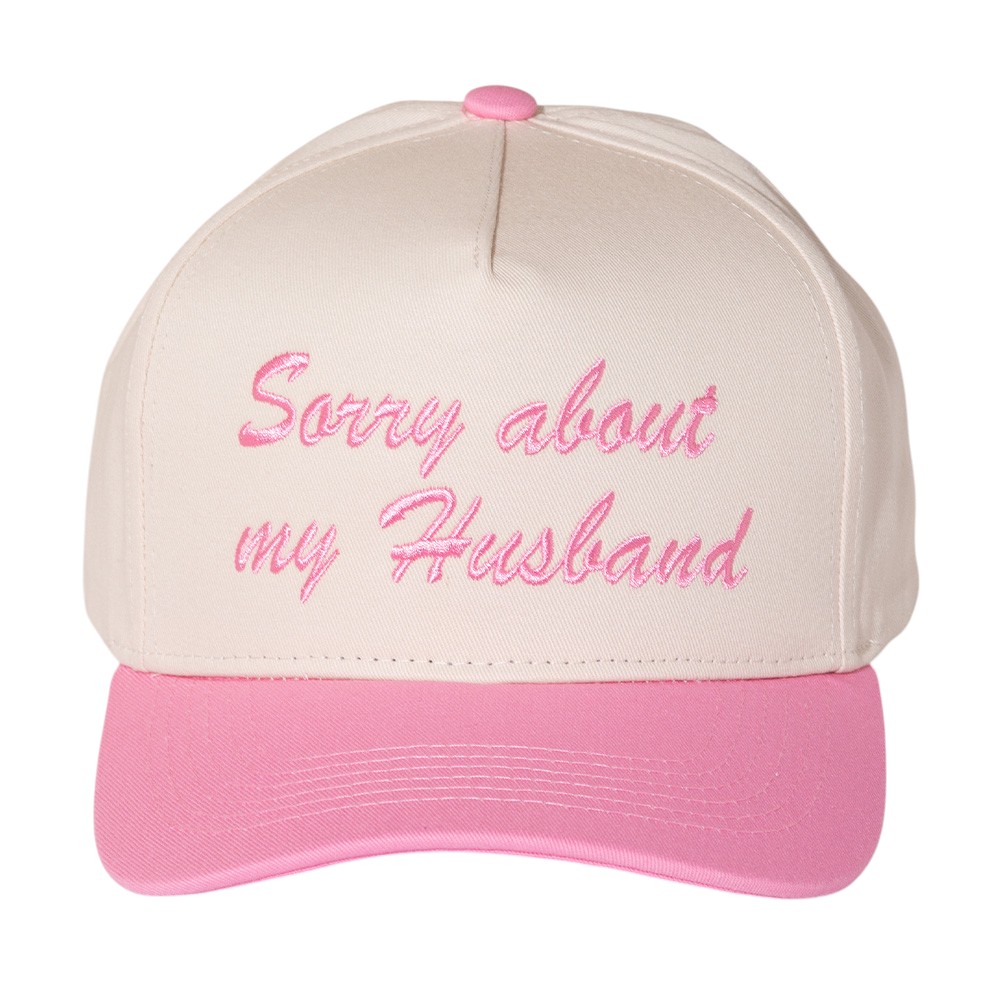 Details • Size : One Size Fits All - Adjustable Strap Makes Fit Comfortable • 5 Panel Canvas Cap : Adjustable Buckle Closure, Relaxed Fit and Pre-Curved Visor • Humorous embroidered cap featuring the playful phrase “Sorry about my Husband.” Perfect for casual wear, gag gifts, parties, or as a fun conversation starter. Adjustable fit makes it a lighthearted accessory and a great novelty gift idea for friends, family, or anyone with a sense of humor.