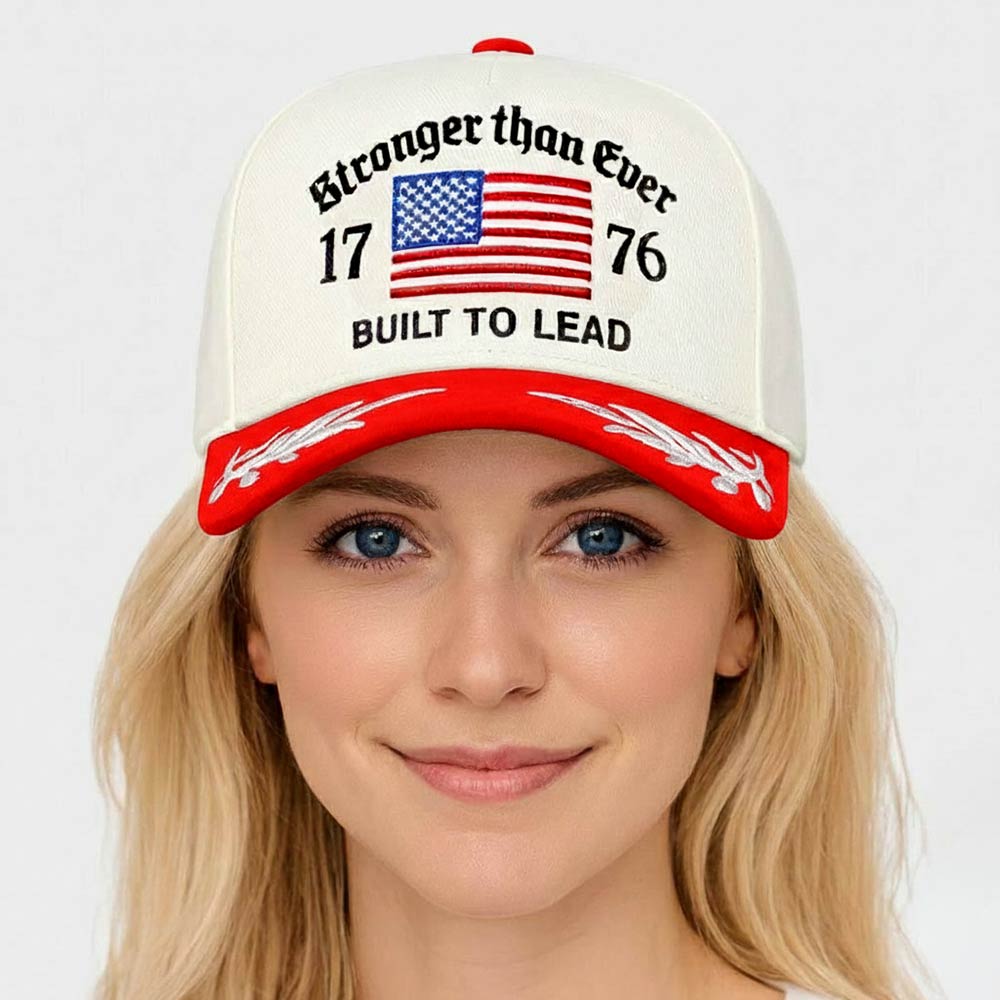 Stronger Than Ever 1776 American USA Flag Leaf Embroidered Baseball Cap