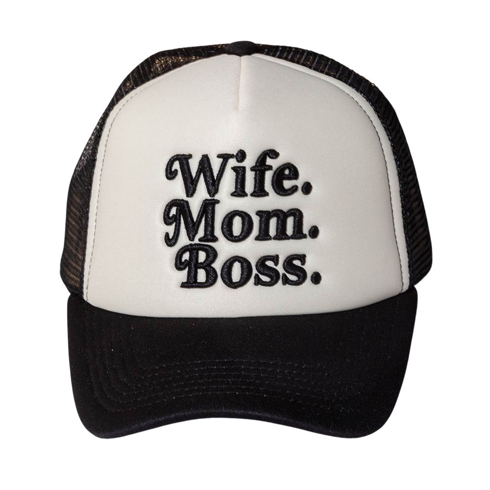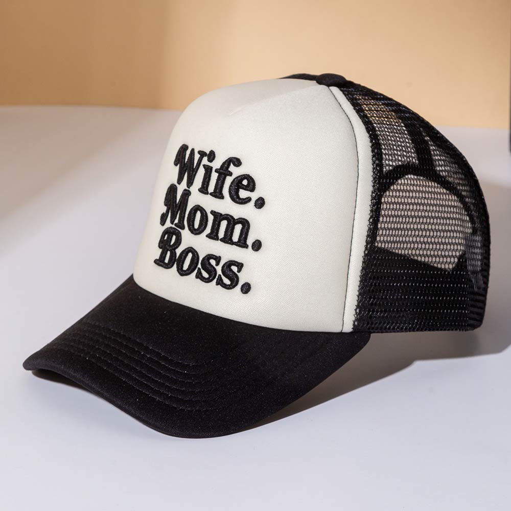 WIFE MOM BOSS Message Embroidered Trucker Hat