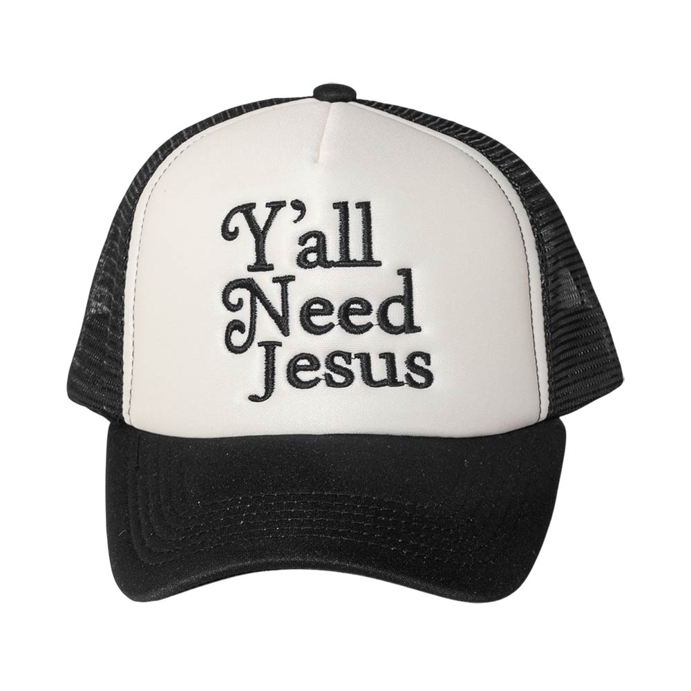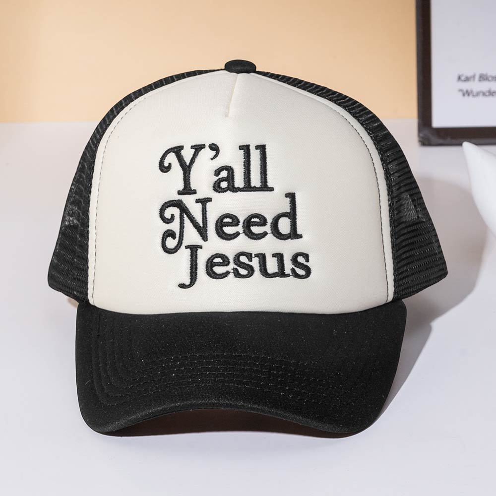 YALL NEED JESUS Message Embroidered Mesh Back Trucker Hat