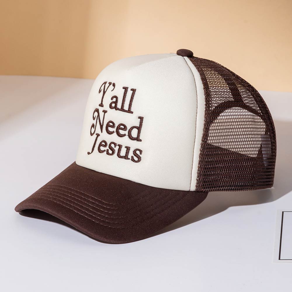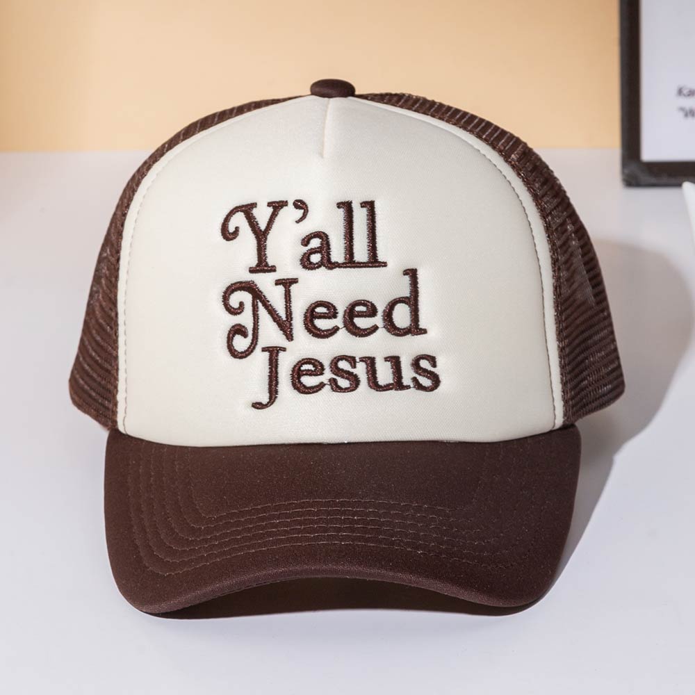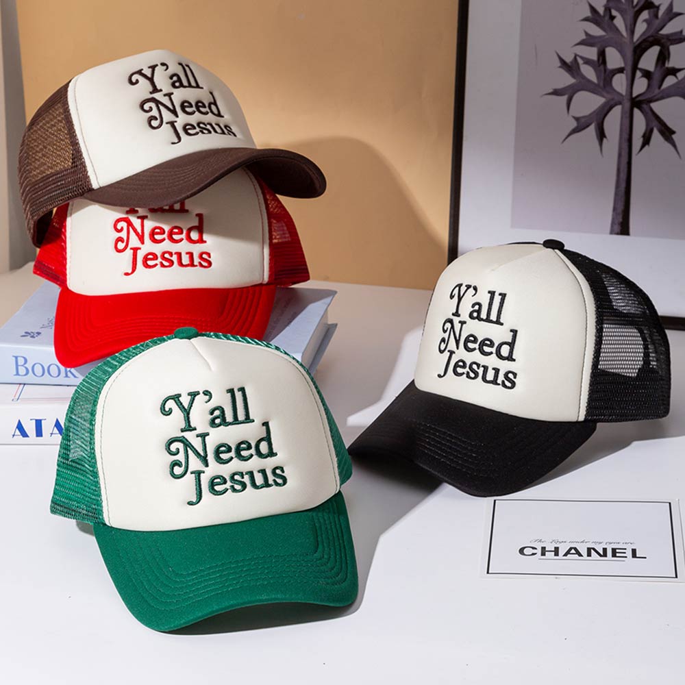 Details • Size : One Size • Bold statement trucker hat featuring “Y’all Need Jesus” embroidery for expressive everyday wear. Designed for a comfortable fit and breathable style, perfect for casual outfits, road trips, outdoor activities, or gifting with a confident message and standout personality.