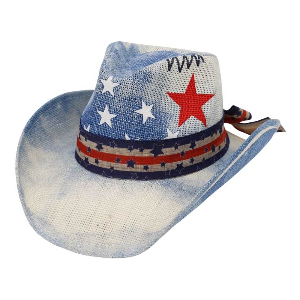 American USA Stars Stripes Print Western Straw Cowboy Hat