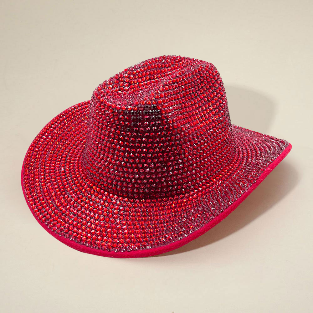 • Shimmering western-inspired cowboy hat adorned with rhinestones. Perfect for concerts, festivals, parties, or standout fashion looks, adding bold sparkle and statement-making style to any outfit.