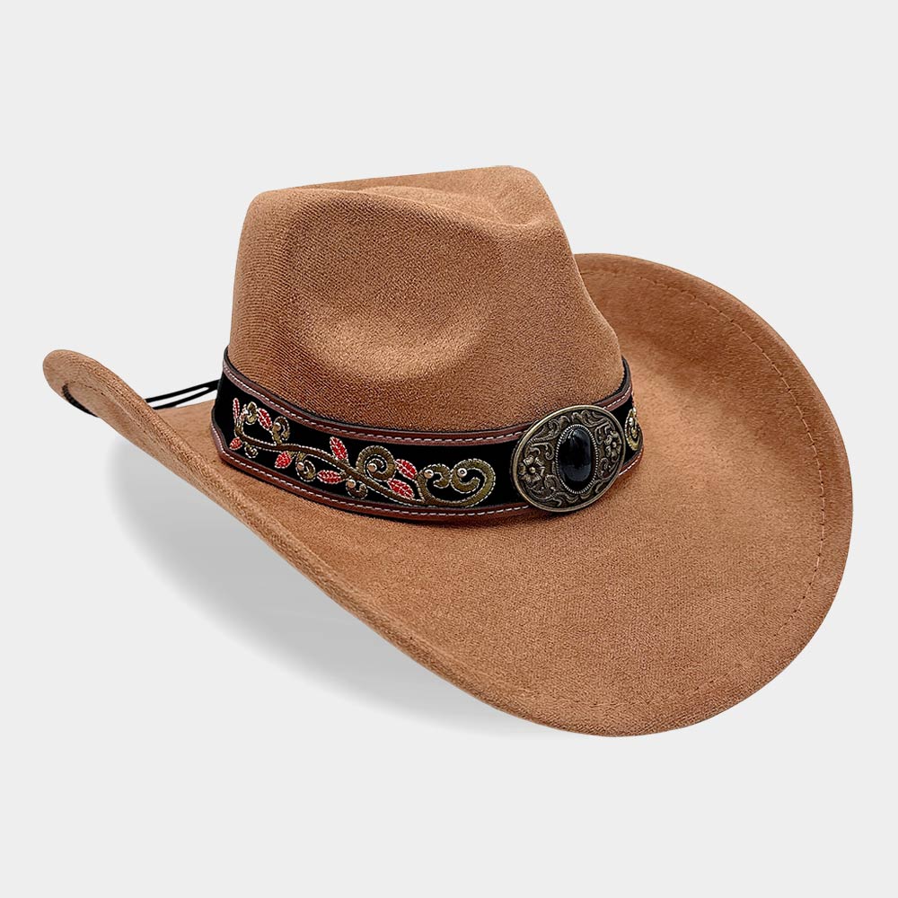 Boho Concho Buckle Embroidered Band Accent Western Cowboy Hat
