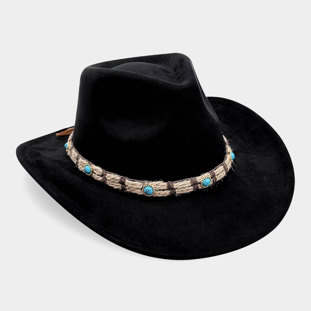 Boho Stone Accent Braided Band Western Cowboy Hat