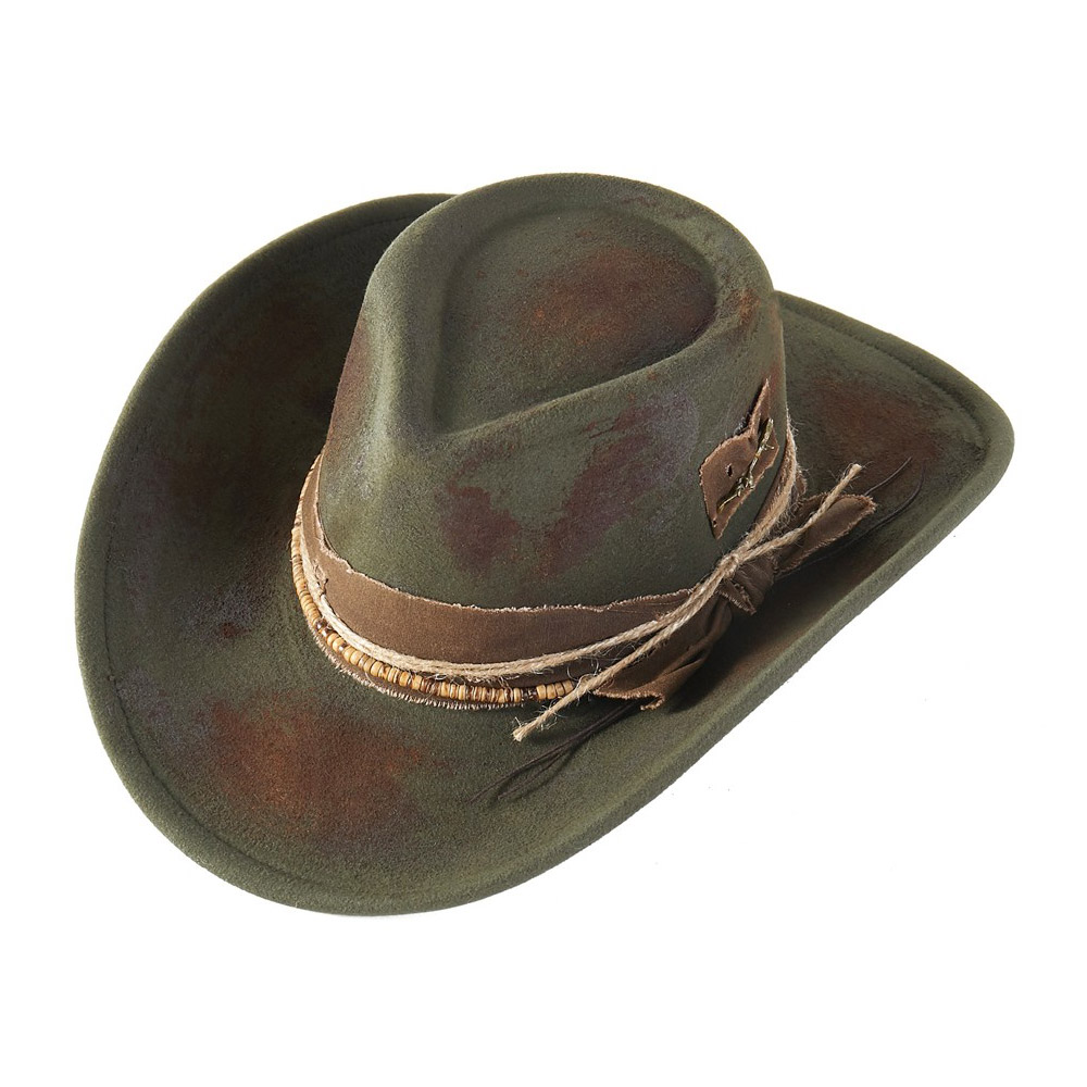 Details • Crown Circumference : 23" • Crown Height : 4.5" • Brim Height : 3.75" • Material : 100% Polyester • Show off rugged charm with the Distressed Vintage Western Hat, featuring a rustic woven band and weathered finish for an authentic look. Perfect for festivals, travel, or casual wear, this timeless accessory adds bold western character to any outfit with lasting comfort and flair.