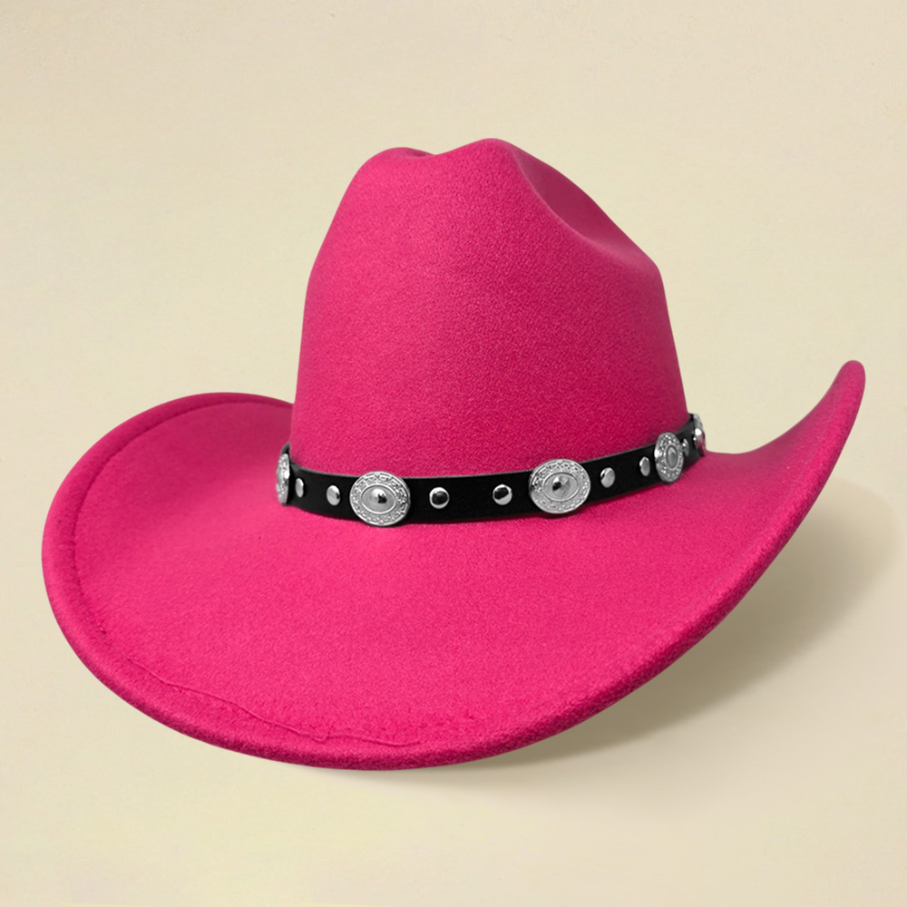 • Classic western cowboy hat featuring a wide brim and a stylish decorative concho band. Perfect for country events, rodeos, festivals, or casual wear, this versatile hat combines traditional charm with bold western flair.