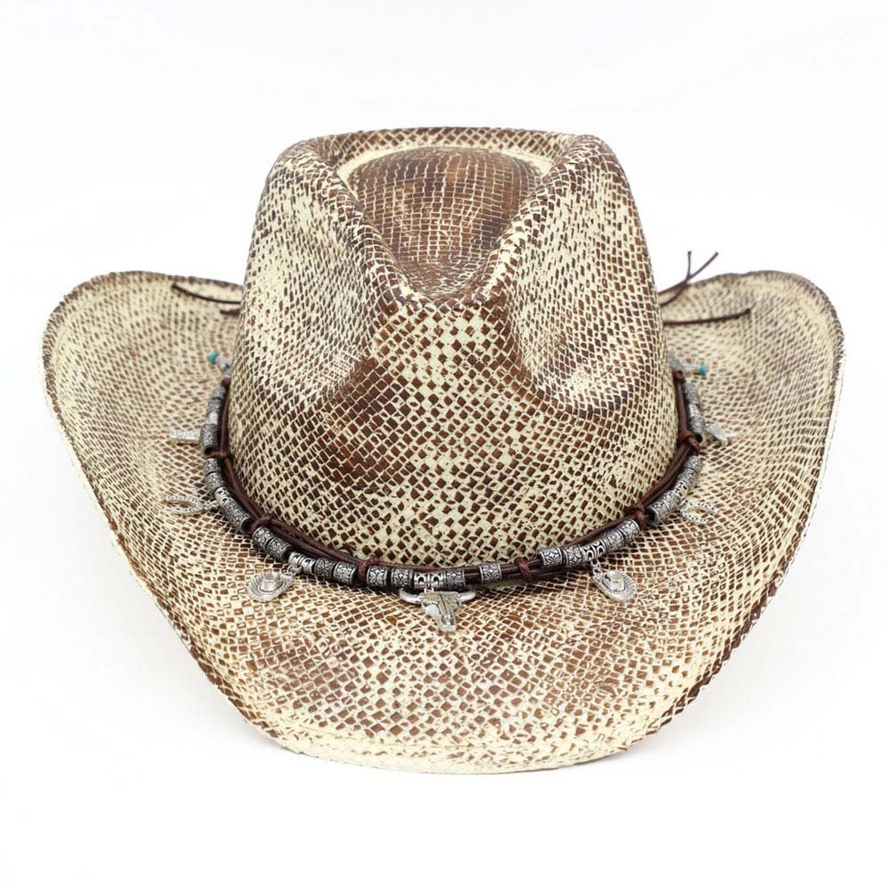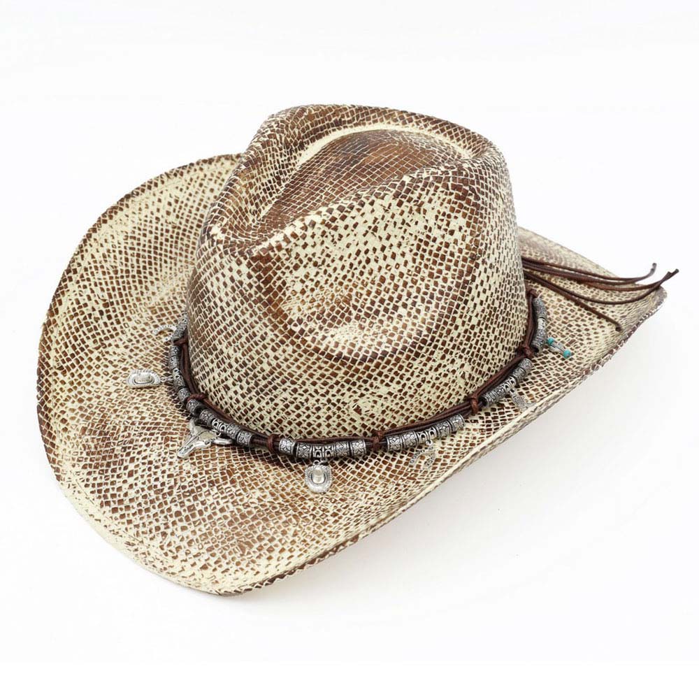 • This western cowboy hat showcases a bold patterned finish with a detailed charm band for a rugged yet stylish look. Designed for country concerts, rodeos, festivals, western boutiques, and themed events, it adds statement appeal while offering comfortable wear and a classic western silhouette.
