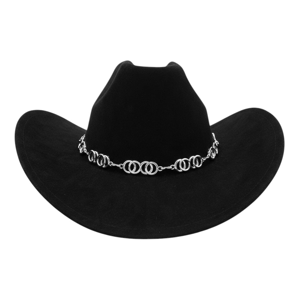 • Refine your style with this bold Western-inspired hat featuring a striking curved brim and an elegant chain detail that adds a luxe touch. Designed to elevate festival looks, evening outfits, or everyday flair, it delivers a standout silhouette that blends classic attitude with modern sophistication.