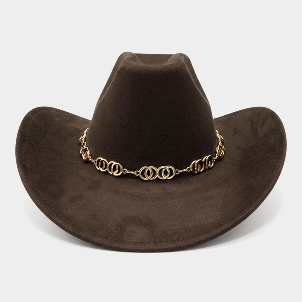 Polished Metal Chain Accent Sculpted Western Cowboy Fedora Hat