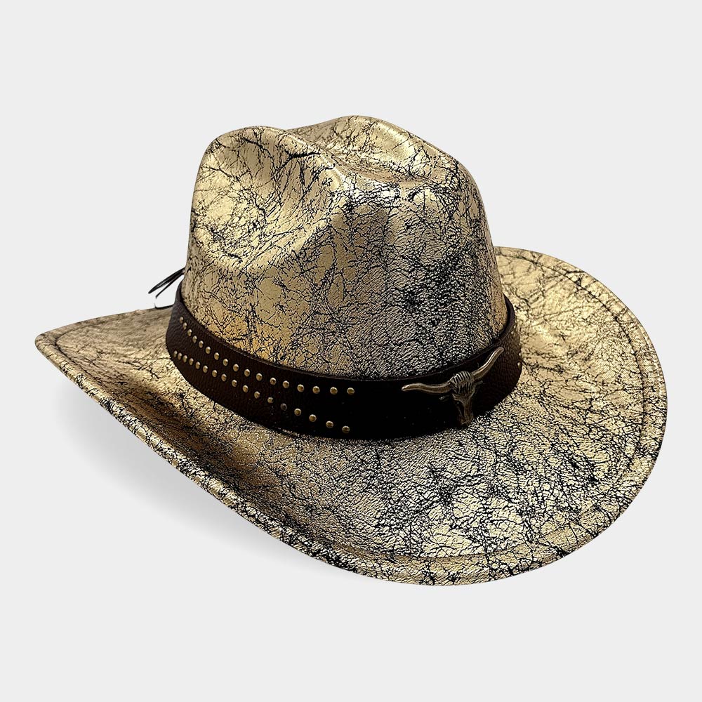 Steer Head Accent Studded Faux Leather Band Western Cowboy Hat