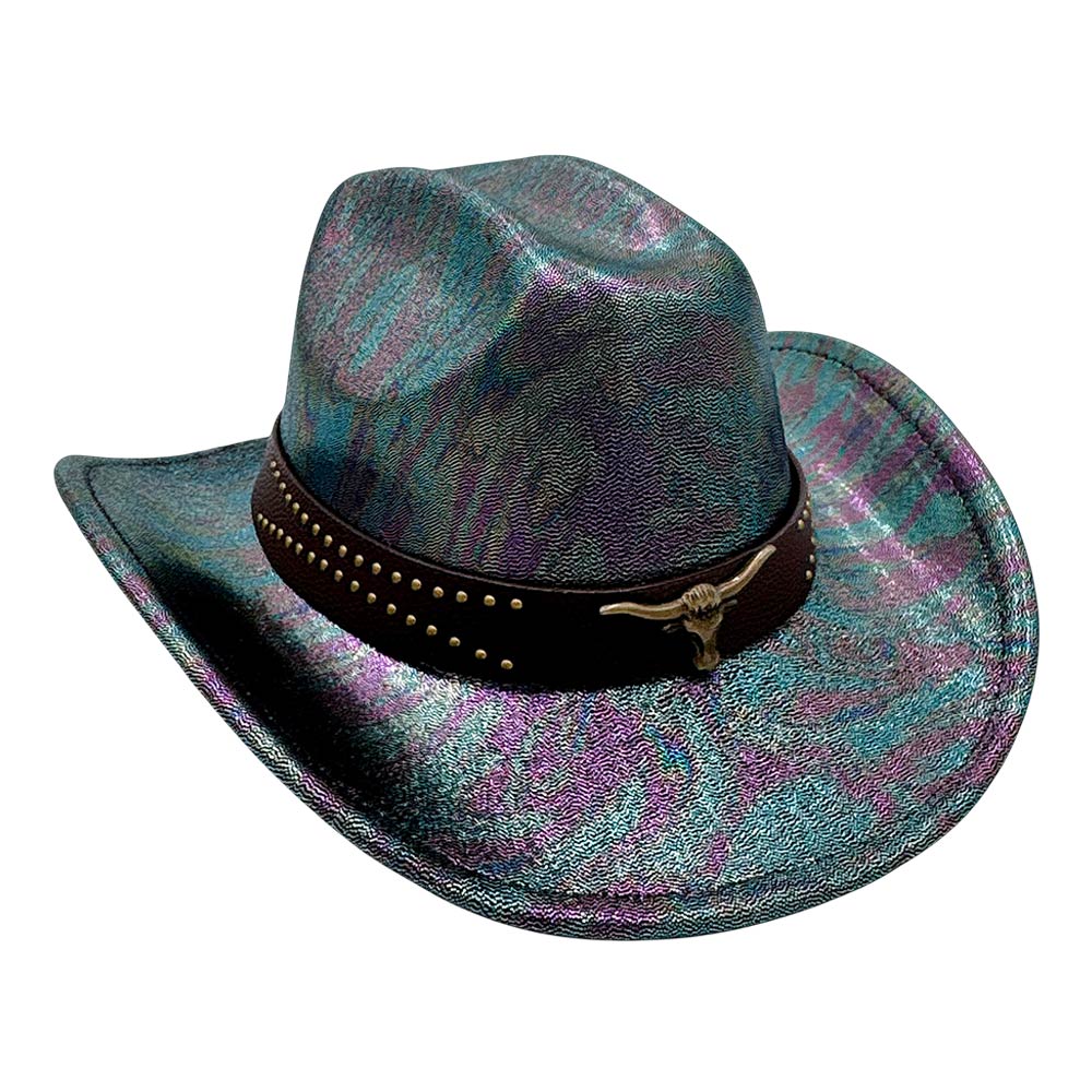 Steer Head Accent Studded Faux Leather Band Western Cowboy Hat