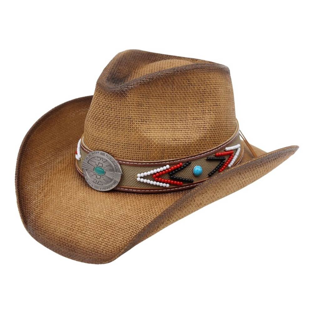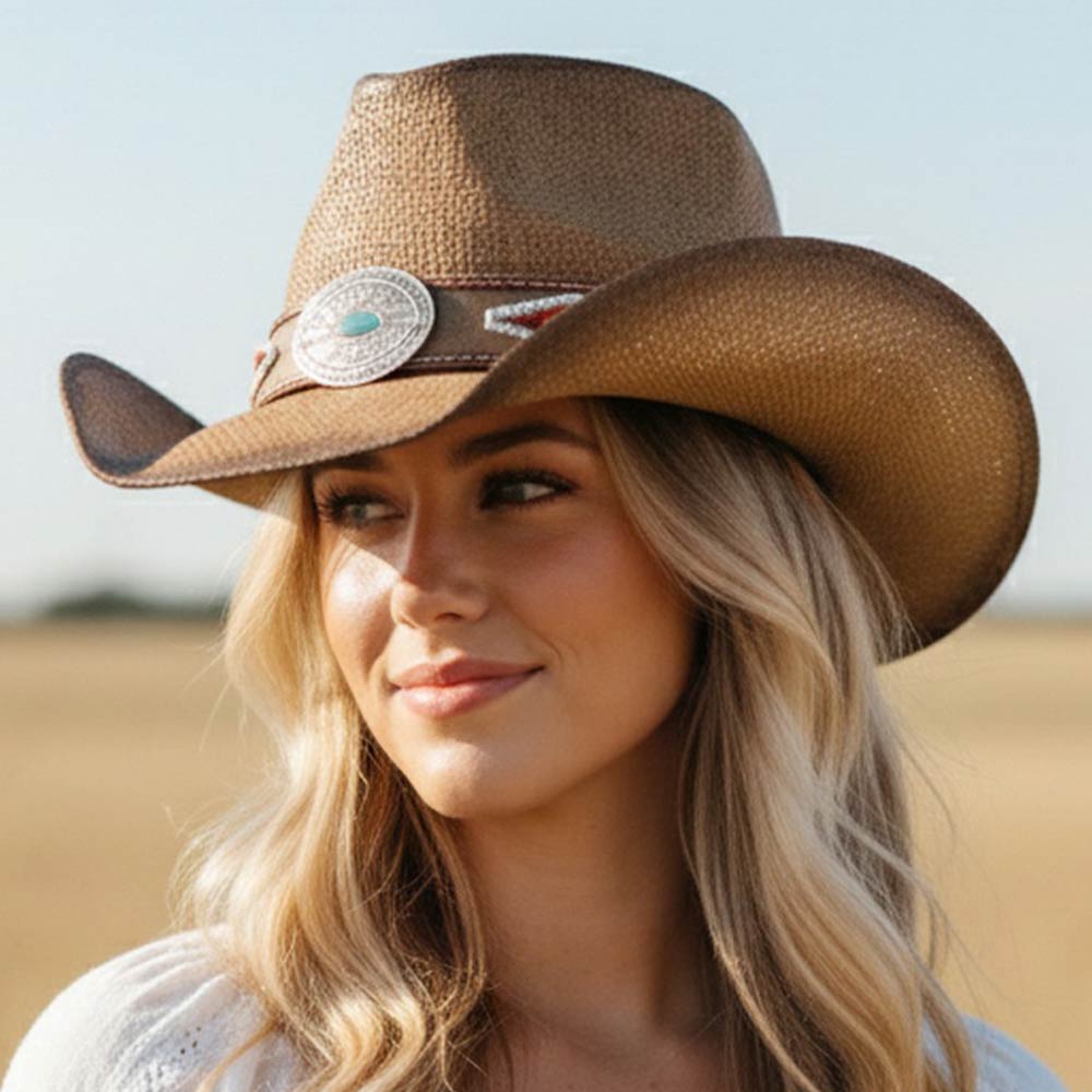 Vintage turquoise Concho Beaded Band Western Straw Cowboy Hat Vintage turquoise Concho Beaded Band Western Straw Cowboy Hat Vintage turquoise Concho Beaded Band Western Straw Cowboy Hat