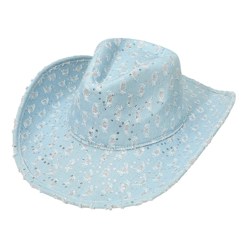• Statement cowboy style hat featuring an allover sequin pattern with a structured crown and wide brim silhouette. Designed to elevate festival outfits, themed events, concerts, and costume styling, this eye catching accessory adds bold texture, visual impact, and standout appeal to any fashion or novelty collection
