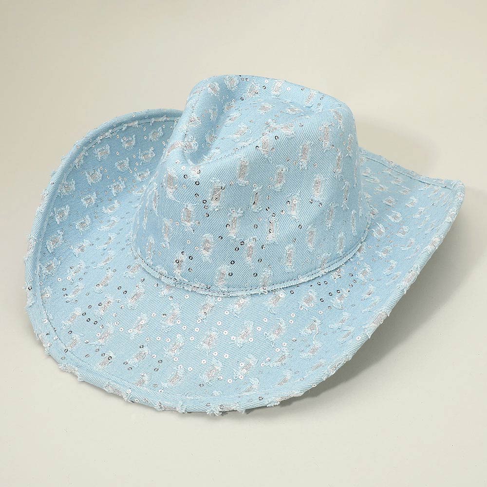 Wide Brim Distressed Sequin Pattern Cowboy Fedora Hat